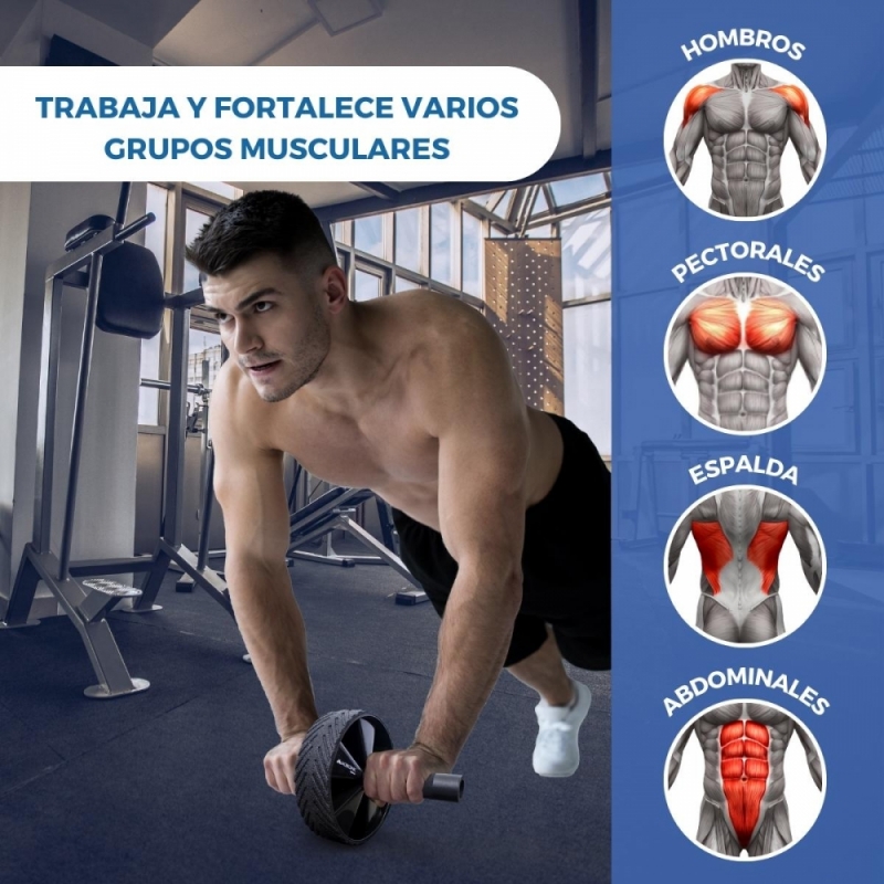 Con este rulo abdominal podrás ejercitar intensamente tus abdominales tanto a nivel superficial como profundo, al igual que podrás entrenar tus glúteos y estabilizar tu columna. Además, cuando realizas ejercicio con rueda abdominal, también trabajas la zona de los hombros y espalda, incrementando la flexibilidad y fuerza en ambas zonas.