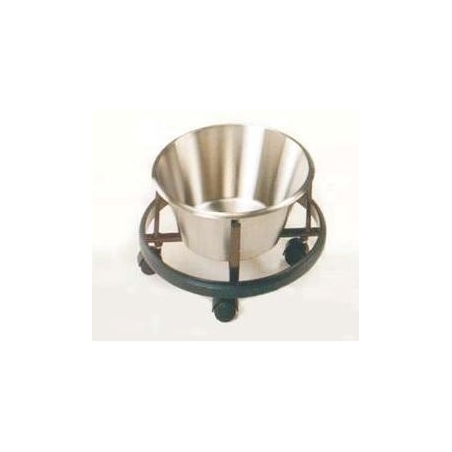 Soporte fabricado en acero esmaltado. Sobre cuatro ruedas. Cubeta en acero inoxidable. Capacidad 8 litros.