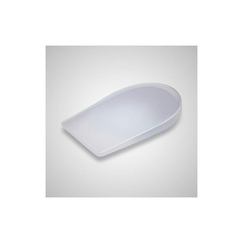Talonera con forma de cuña diseñada con un único tipo de silicona. Amortigua el impacto del talón contra el suelo y distribuye la presión en el talón de manera homogénea. Fabricadas con silicona médica viscoelástica, con adaptación bilateral. Se adaptan a la temperatura corporal y son lavables.