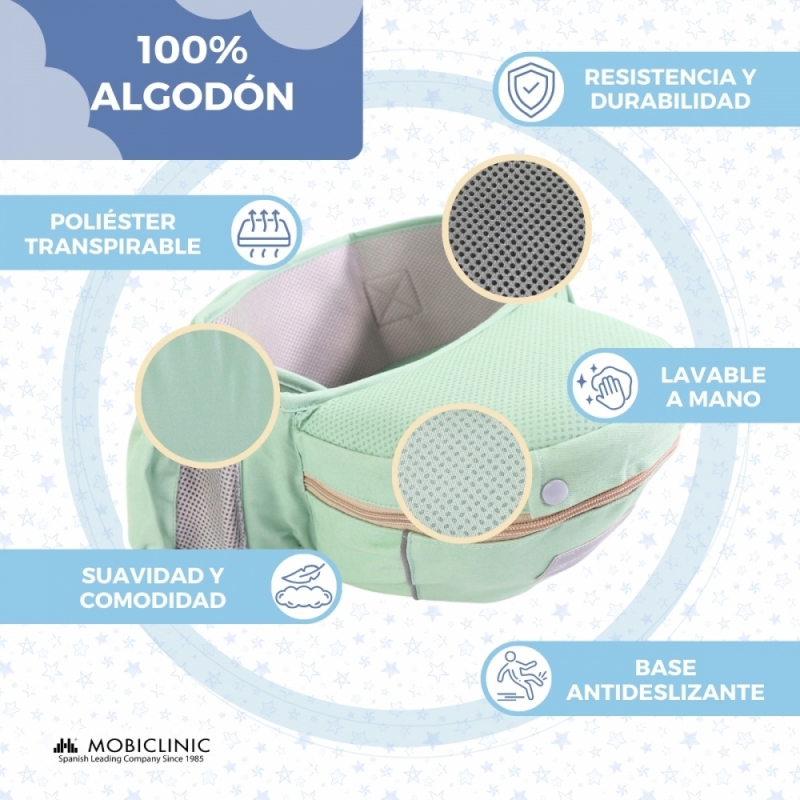Mochila portabebés 6 en 1 | Transpirable | 0-36 meses | Correas regulables | Algodón | Bolsillo | Verde | Moley | Mobiclinic