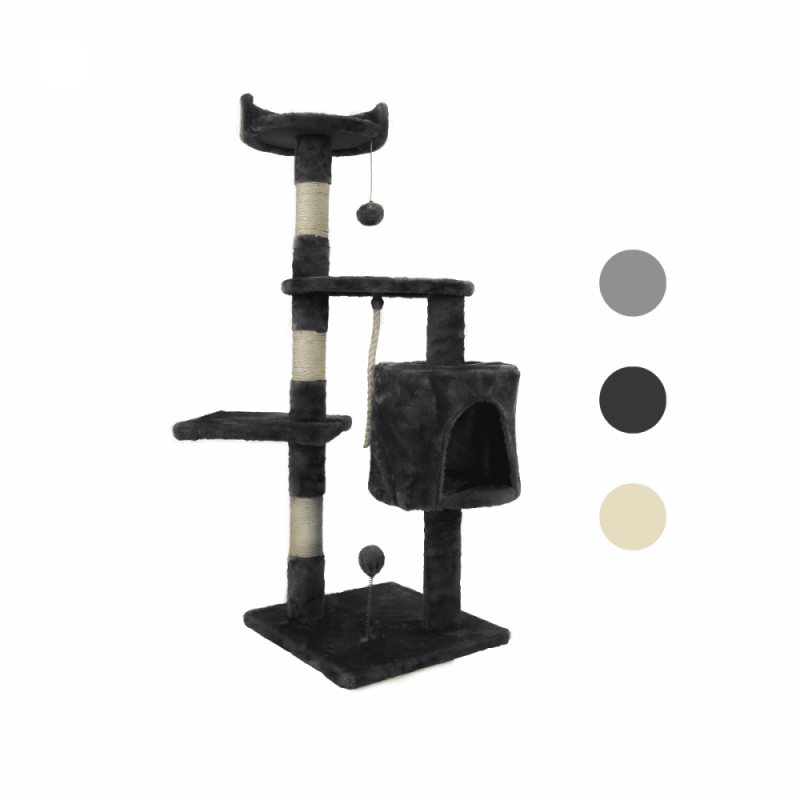 Árbol rascador para gatos | Mediano | Rascagatos | 3 alturas | 40x40x112 cm | Gris Oscuro | Silvestre | Mobiclinic