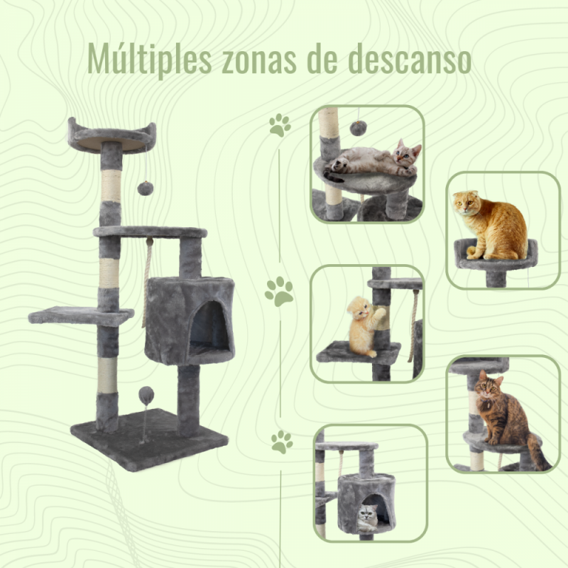 - Pelotas de juego: la estructura cuenta con pelotas para entretener y divertir a tu gato.