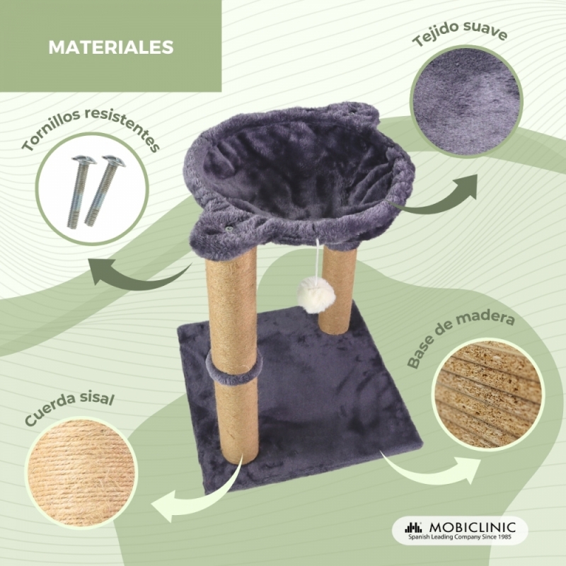 El árbol para gatos Milo contiene dos postes rascadores y una hamaca, por lo que tus mascotas encontrarán en este diseño 2 en 1 una zona ideal para su descanso y entretenimiento. De este modo, tendremos localizado siempre a nuestro gato y estaremos tranquilos.