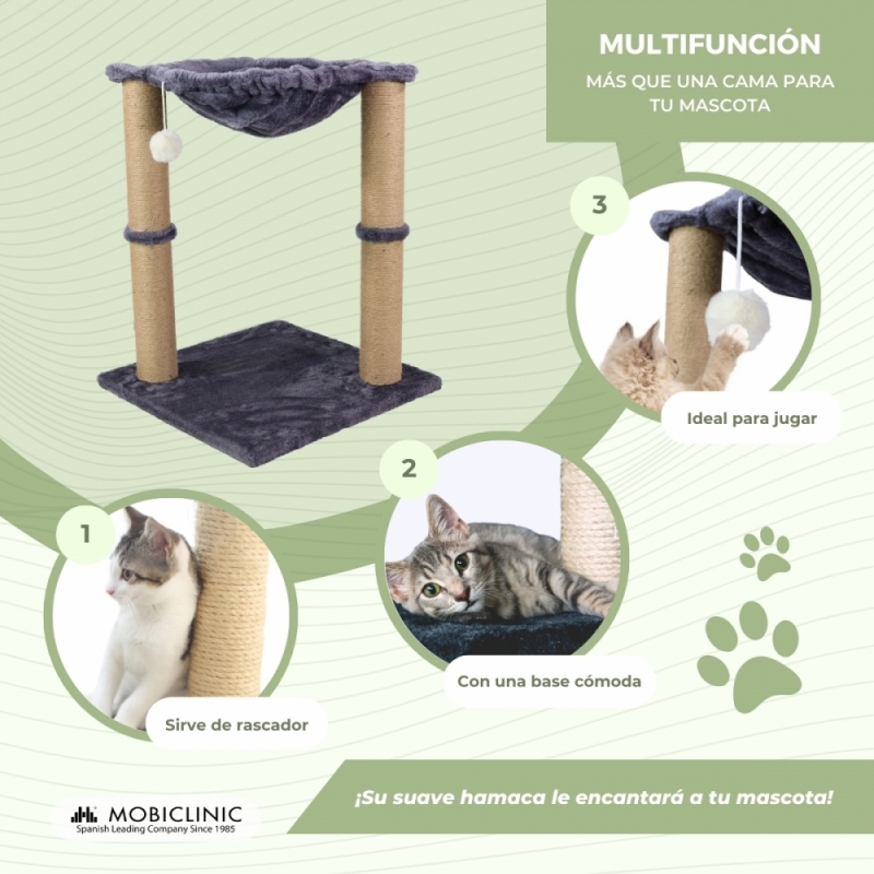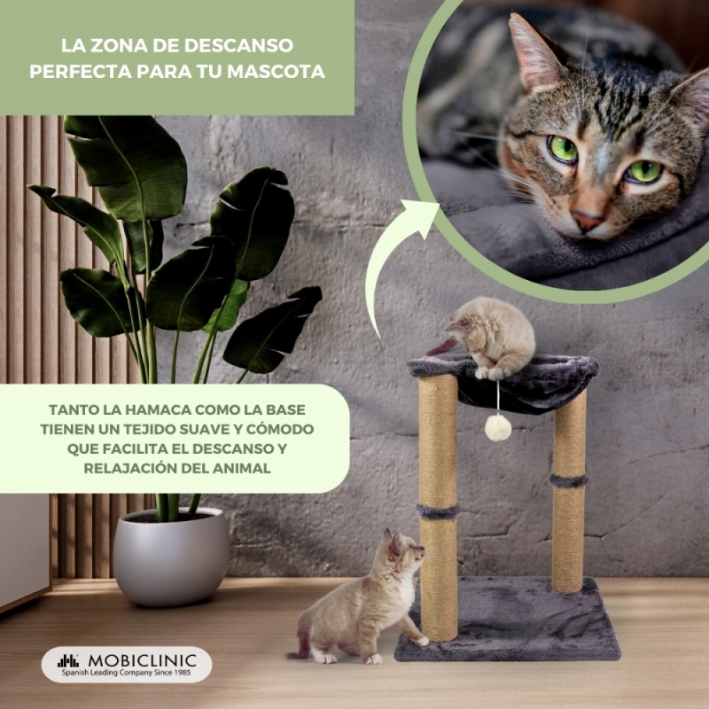 DISEÑO 2 EN 1: Este árbol para gatos contiene dos postes rascadores y una hamaca, por lo que tus mascotas encontrarán en este elemento una zona ideal para su descanso y entretenimiento. De este modo, tendremos localizado siempre a nuestro gato y estaremos tranquilos.