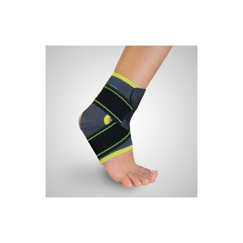 Este estabilizador de tobillo está confeccionado con tejido elástico y transpirable. Está abierta sobre la pantorrilla para facilitar su colocación. Además, incorpora una cinta elástica de sujeción que posibilita la realización de un vendaje estabilizador.