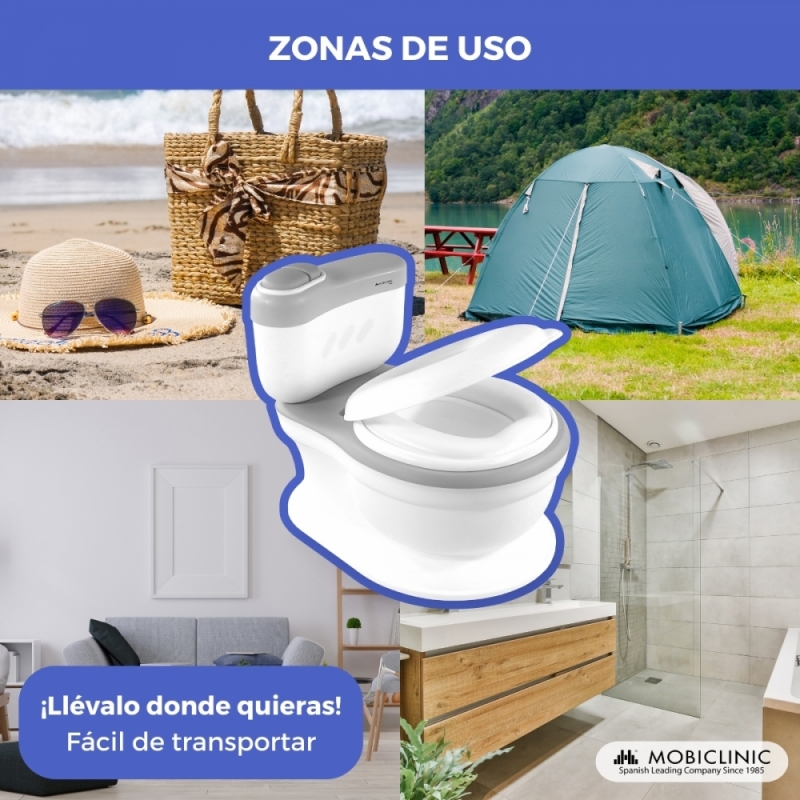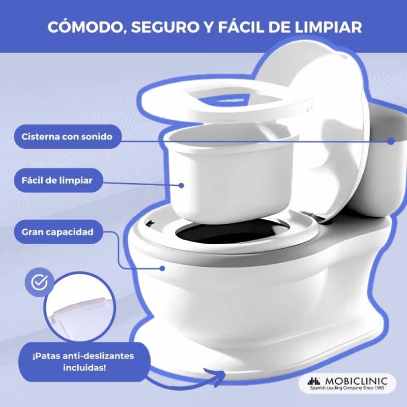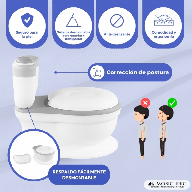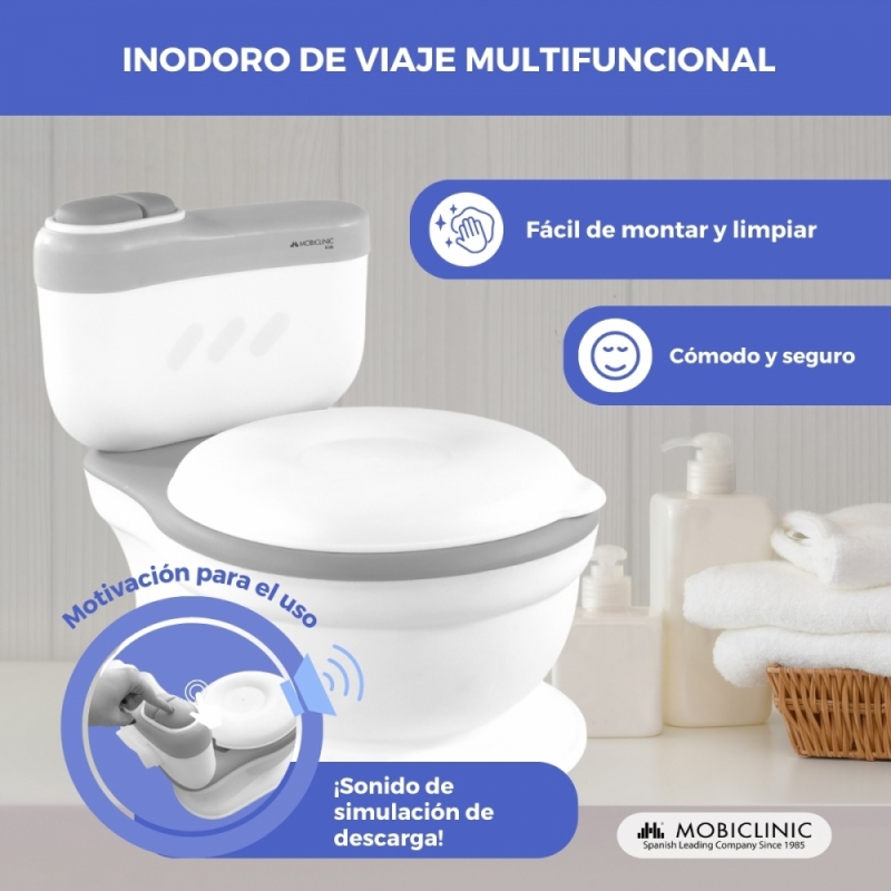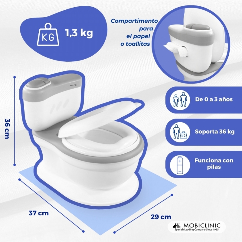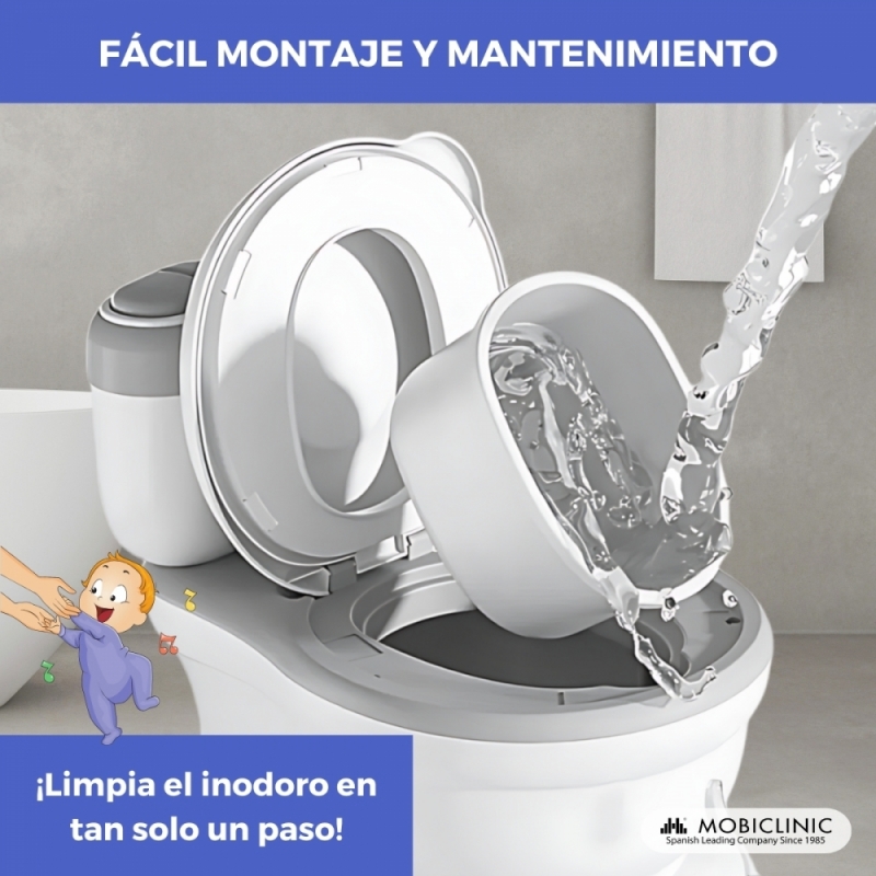 Inodoro infantil | Con sonido | Cubeta extraíble | De 1 a 6 años | Antideslizante | Gris | ToiKid | Mobiclinic