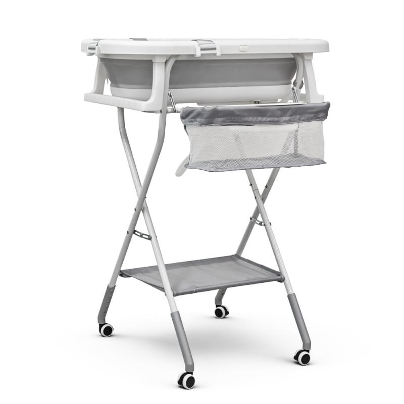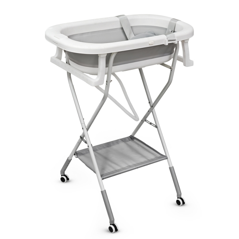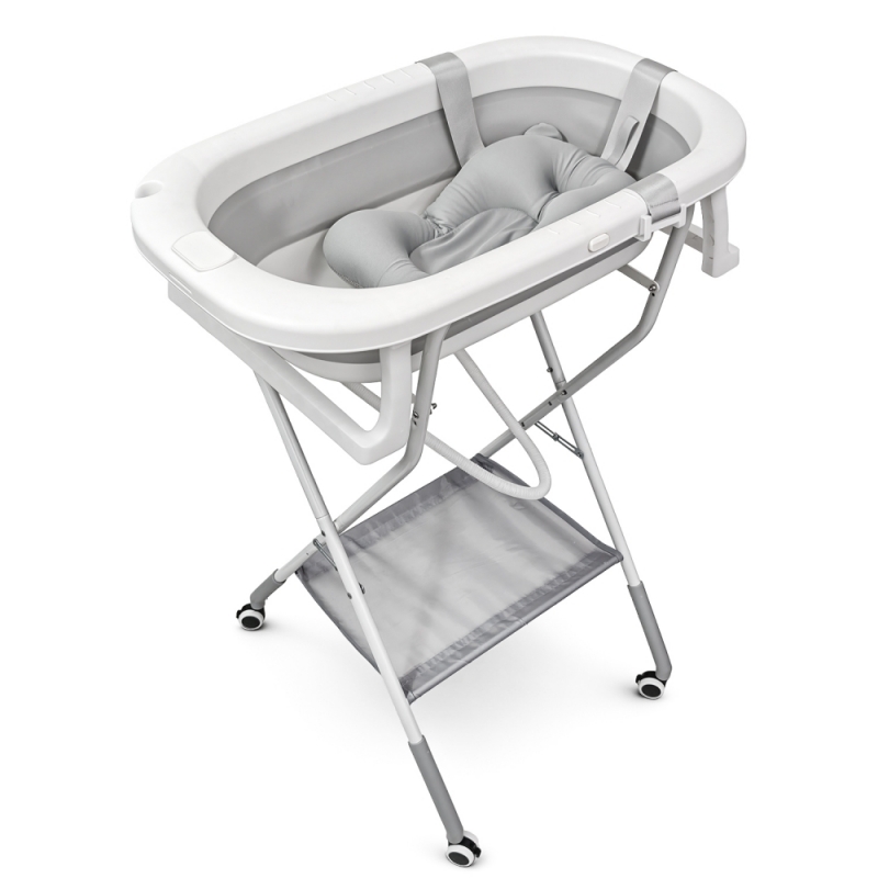 Otro de sus beneficios principales es su sistema de plegado tanto en la bañera como en la estructura. Gracias a su ensamblaje mediante clips y estructura desplegable, se monta de forma rápida y sencilla en pocos pasos. Una vez plegada, ocupa un espacio mínimo, lo que la hace ideal para hogares con espacio reducido o para guardarla cómodamente tras su uso.