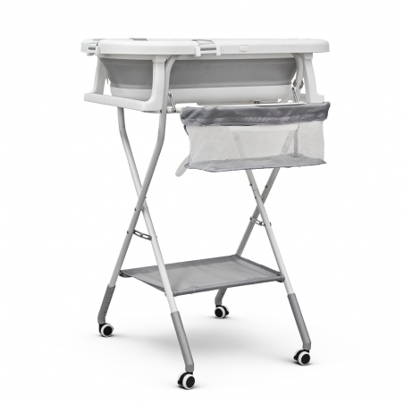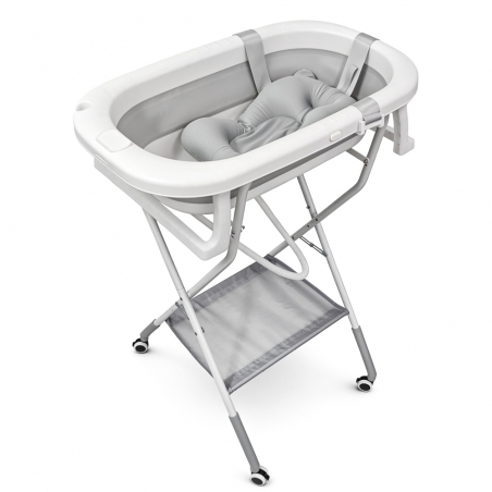 Su diseño elevado con altura regulable en 5 posiciones (95,5 cm a 103,5 cm) permite bañar al bebé sin necesidad de agacharse, evitando posibles molestias y mejorando la postura del adulto. Además, dispone de un cojín o respaldo que proporciona una mayor comodidad y sujeción al bebé durante el baño, adaptándose a las necesidades desde los 0 a los 36 meses.