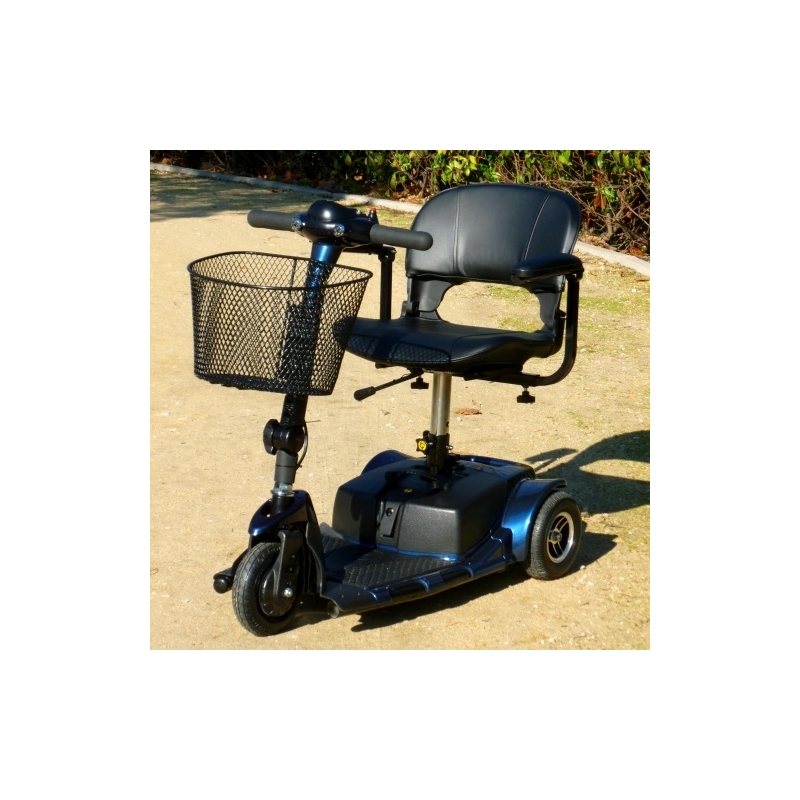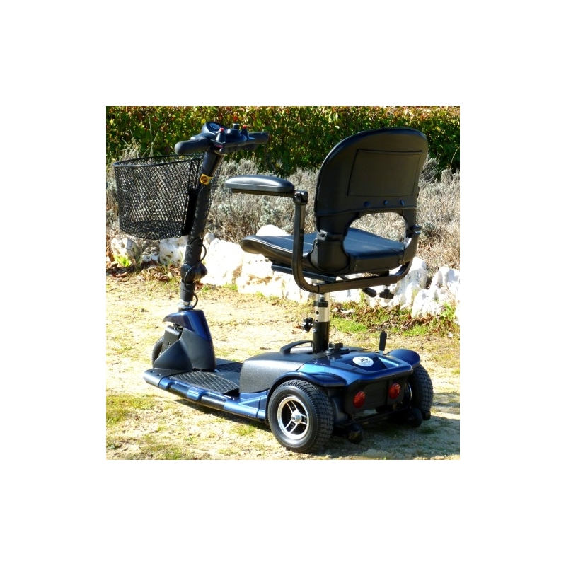 Esta scooter de 3 ruedas, está totalmente equipada con luces delanteras y traseras que mejoraran la visibilidad del usuario, un paragolpes trasero que protegerá la estructura de la scooter, un manillar, un asiento y reposabrazos regulables para adaptar la scooter a las necesidades del usuario, una palanca de desembrague y unos ruedines antivuelco.
