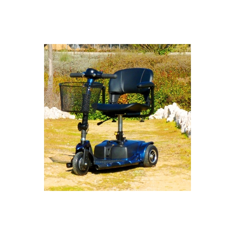 Esta scooter de 3 ruedas, está totalmente equipada con luces delanteras y traseras que mejoraran la visibilidad del usuario, un paragolpes trasero que protegerá la estructura de la scooter, un manillar, un asiento y reposabrazos regulables para adaptar la scooter a las necesidades del usuario, una palanca de desembrague y unos ruedines antivuelco.