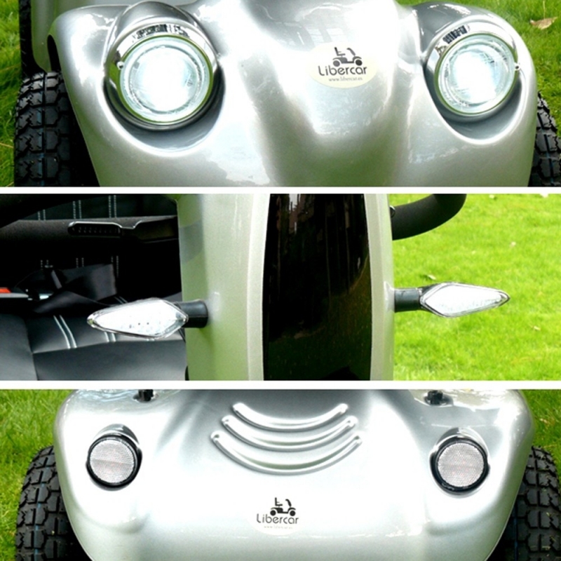 SEGURO: el scooter para personas con movilidad reducida vela por toda la seguridad del usuario incorporando paragolpes que protegen de posibles impactos, luces LED e intermitentes que permiten conducir de noche y realizar maniobras y cinturón de seguridad.