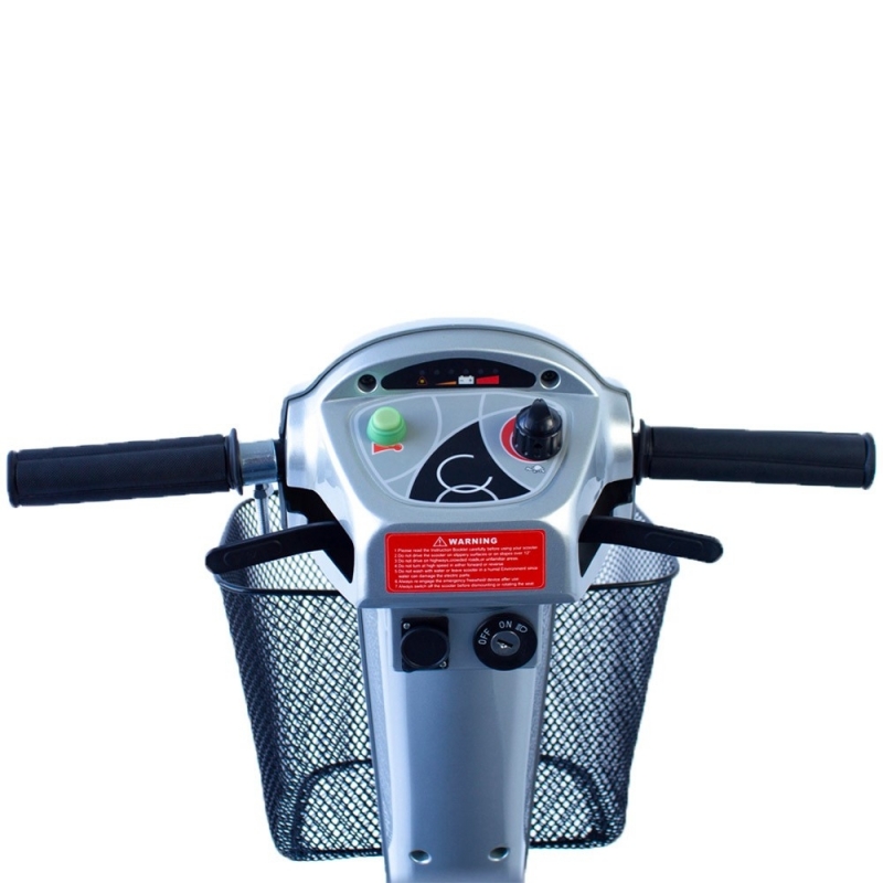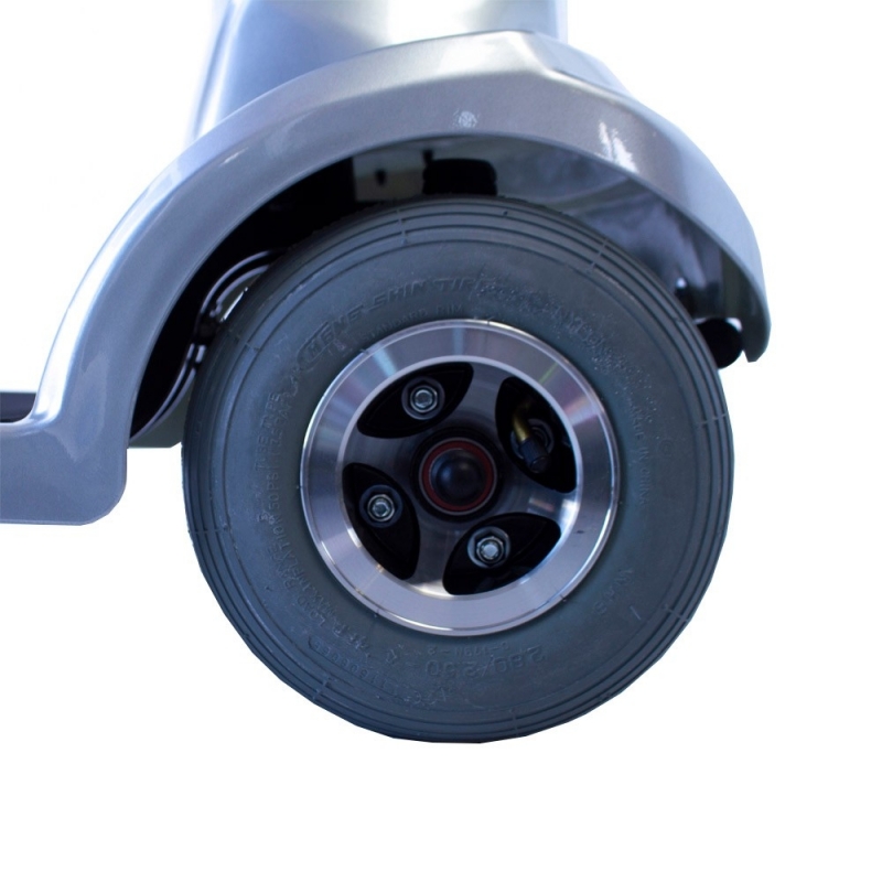 Es un scooter movilidad reducida muy seguro, incluye ruedas traseras antivuelco, para que, en curvas e inclinaciones, no exista riesgo de caída. Tiene el chasis reforzado para reducir la flexión y el rodaje de las llantas.