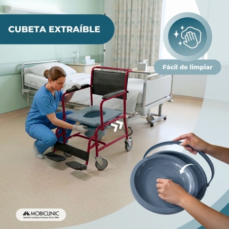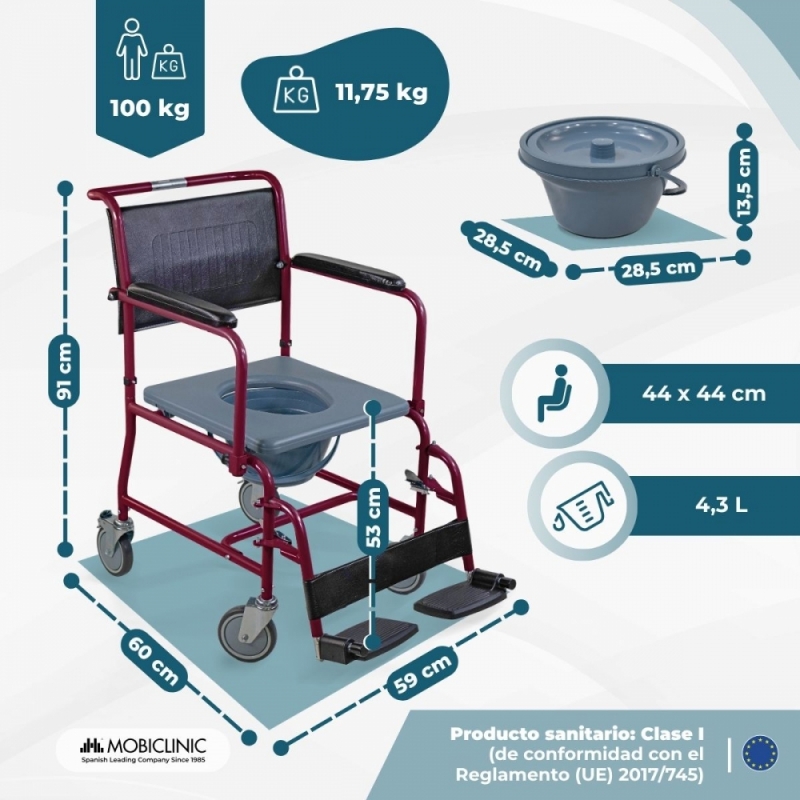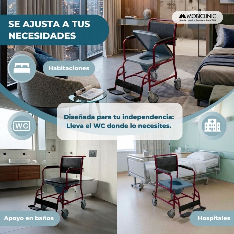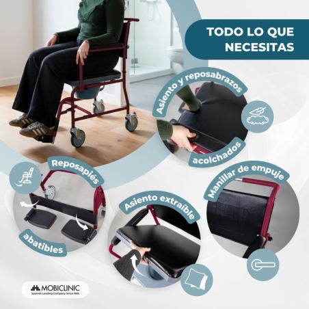 La silla de ruedas con inodoro Ancla se trata de una ayuda para el baño ideal para personas con movilidad reducida o con dificultades para asearse o realizar sus necesidades. Esta silla de baño es realmente manejable siendo muy cómoda para desplazar por el hogar.
