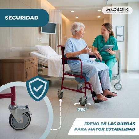 SEGURA: evita accidentes gracias a los frenos colocados en las ruedas traseras para mantener la silla inodoro con ruedas firme al suelo