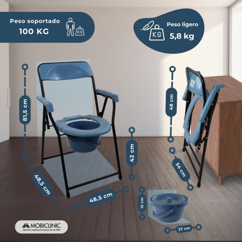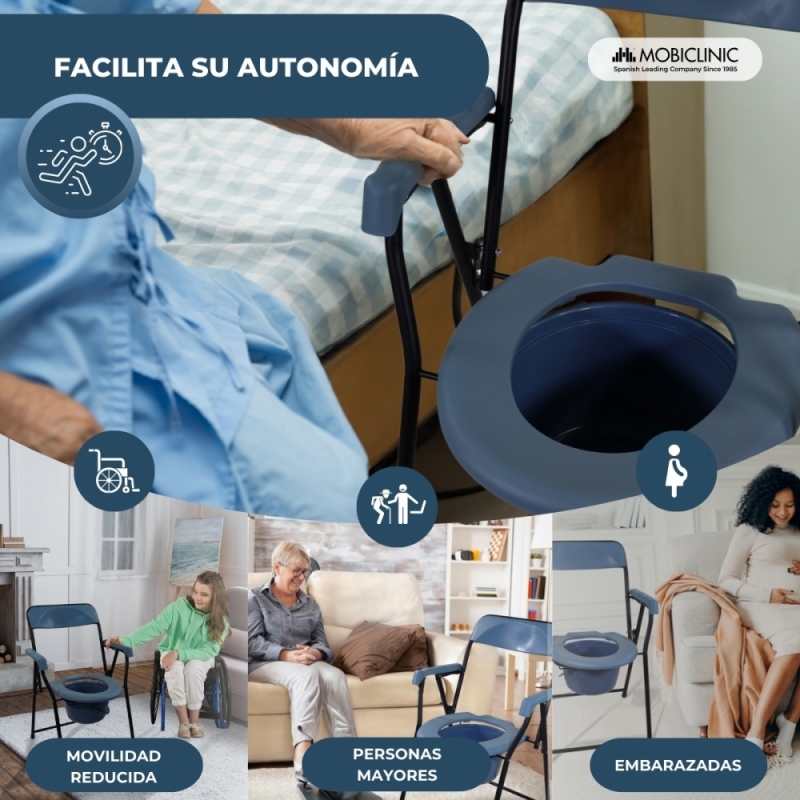- La silla con WC es fácil de guardar e ideal para espacios pequeños, y cuenta con un asiento similar a la taza del váter para que no te sientas extraño al hacer sus necesidades.