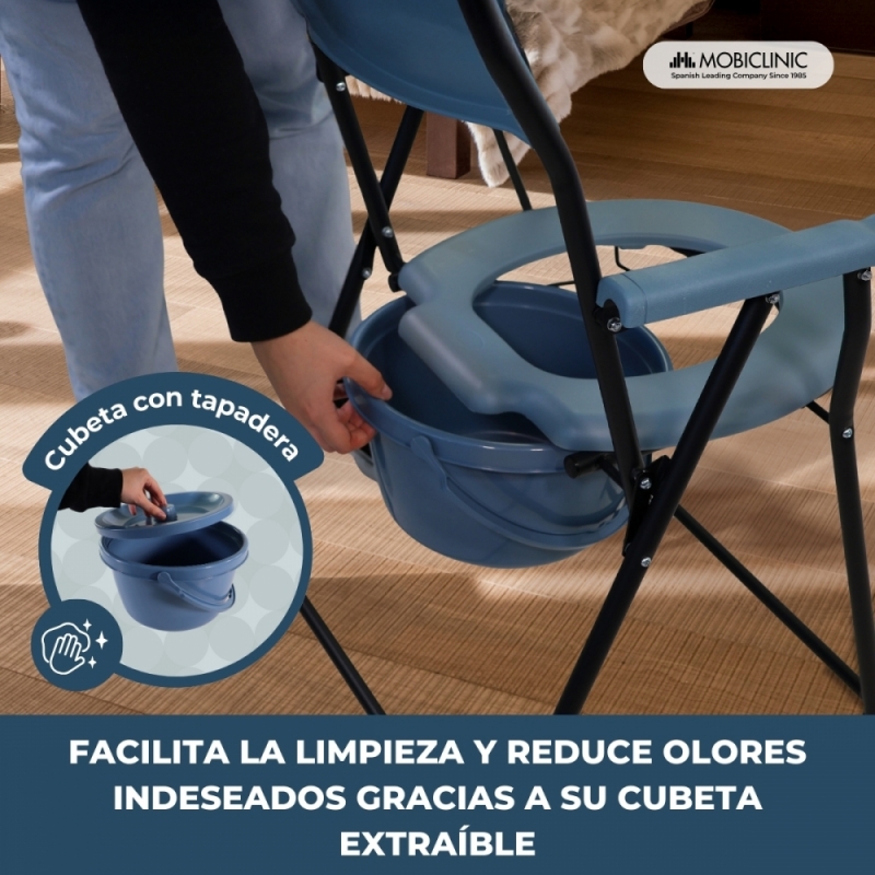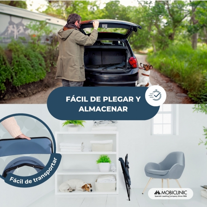 PLEGABLE: podrás transportar esta silla con WC fácilmente y apenas te ocupará espacio en tu hogar gracias a su sistema de plegado