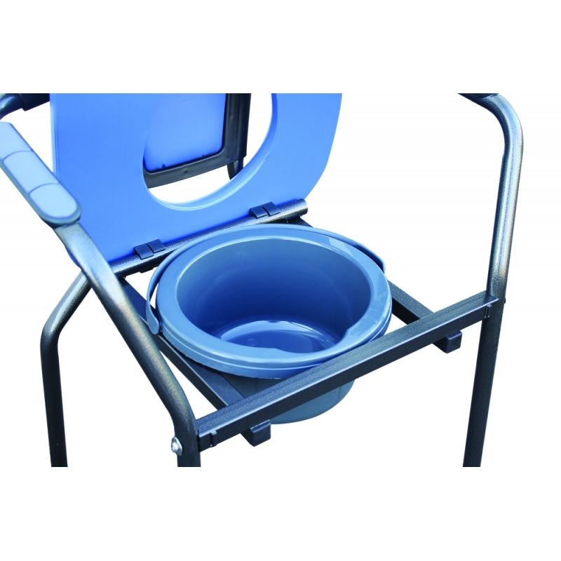 La silla habitación Agronda con inodoro y reposabrazos, color azul. Es un baño portátil ideal para las personas mayores, enfermos, ancianos o con