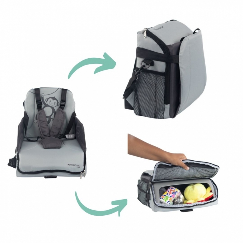 - Trona de Viaje: es portátil y plegable. Posee un compartimento para guardar biberones, pañales, etc.