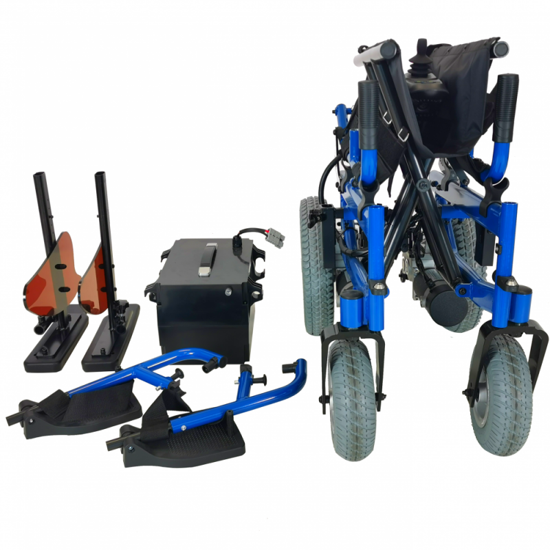 DESMONTABLE Y TRANSPORTABLE: el chasis de aluminio, las baterías, los reposabrazos y los reposapiés son extraíbles, lo que facilitan el desmontaje y transporte de esta silla. De esta forma, el traslado de la silla Emblema resulta muy sencillo.