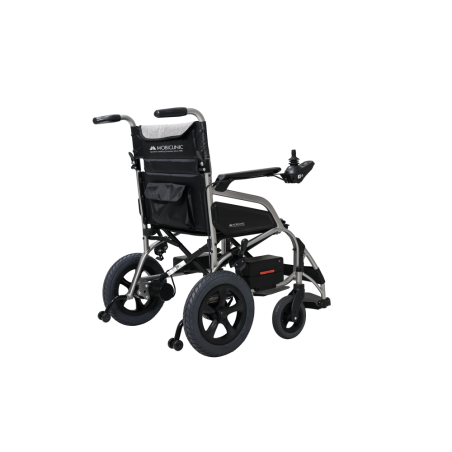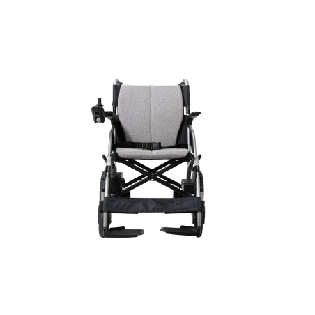 Su doble modo de conducción permite utilizar la silla en modo eléctrico, funcionando completamente mediante el joystick o en modo potencia asistida, donde el motor ayuda al empuje reduciendo el esfuerzo, muy útil en pendientes suaves o trayectos largos. Su estructura de aluminio plegable facilita el transporte y almacenamiento, convirtiéndola en una opción práctica para viajes y uso diario. Dispone de controladores inteligentes con botón de encendido, indicar de energía, joystick universal y bocina.