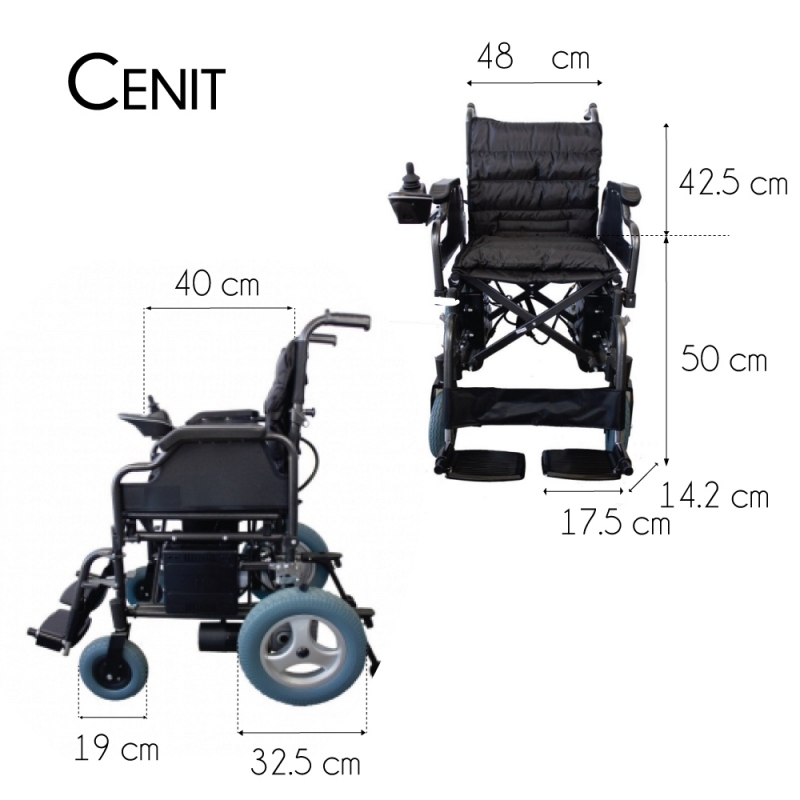 Silla de ruedas eléctrica plegable | Auton. 20 km | 20Ah | Motor | Acero | Negro | Cenit | Mobiclinic