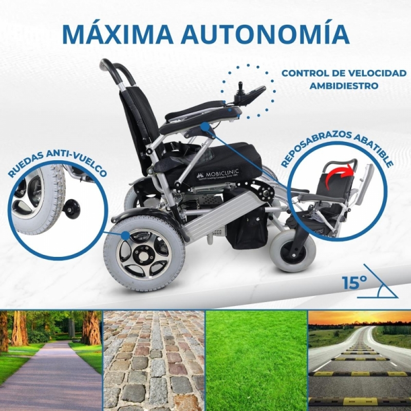 Silla de ruedas eléctrica | Plegable | Alta autonomía 51 km | Batería 30Ah | Aluminio | Troya Plus Ultra | Mobiclinic