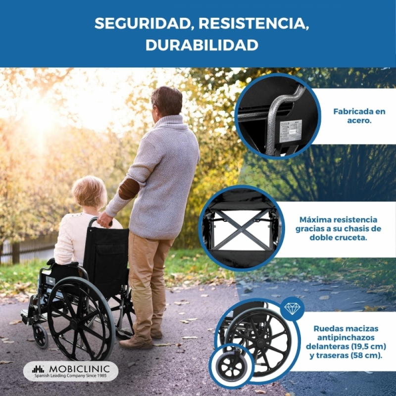 Silla de ruedas | Plegable | Reposabrazos abatibles | Ruedas grandes | Ortopédica | Premium | Giralda | Mobiclinic