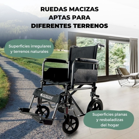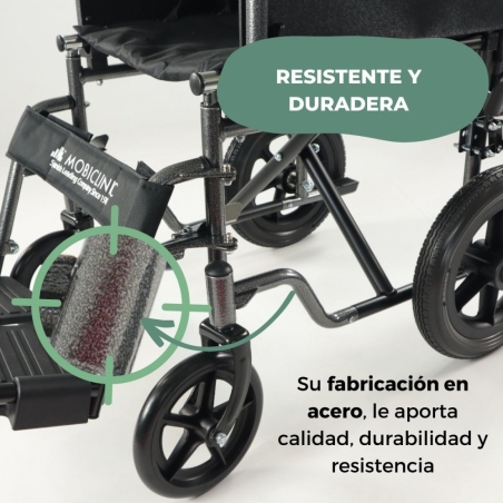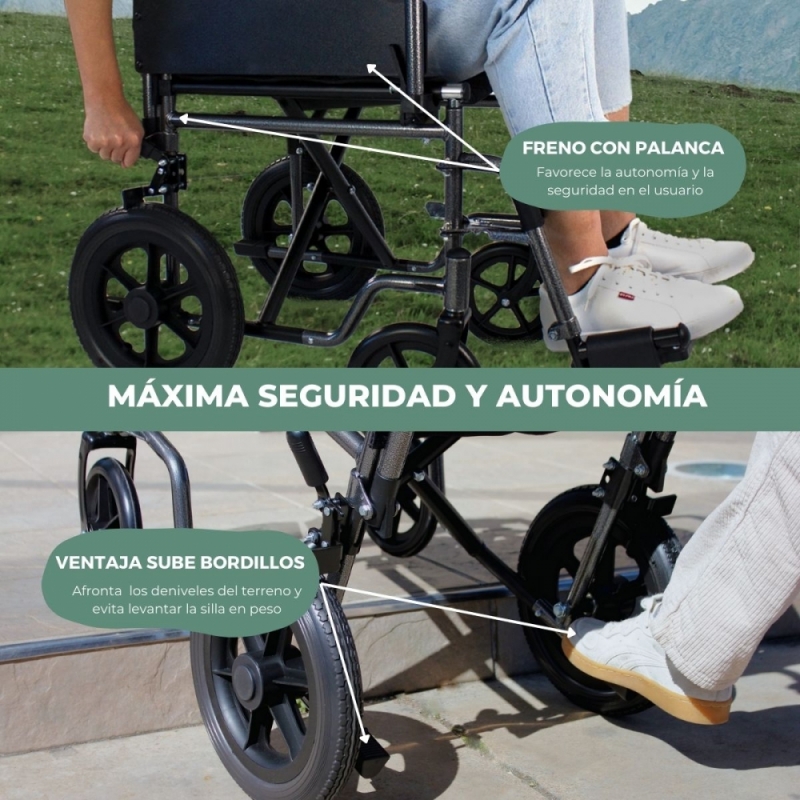Además, es plegable para poder transportarla y guardarla fácilmente, lo que la convierte en una silla de ruedas ligera y liviana. Por si fuera poco, sus ruedas son pequeñas y macizas, sinónimo de durabilidad y seguridad, características que la convierten en una silla de ruedas manual de fácil uso. Además, una total seguridad a la hora de prevenir caídas y crear un mayor grado de autonomía e independencia al usuario.