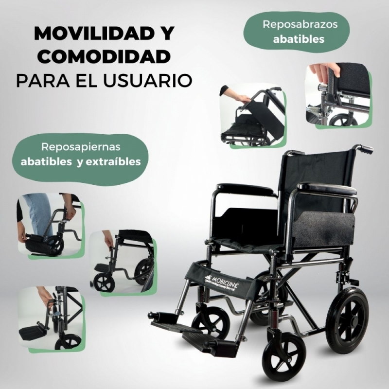 Otra de las características distintivas de esta silla de ruedas para ancianos de ruedas pequeñas es que los reposabrazos del usuario son abatibles, algo que facilitará al cuidador la transferencia del paciente desde cualquier sitio a la silla de ruedas.