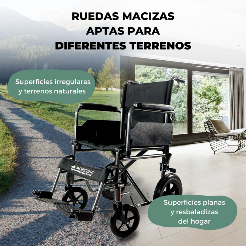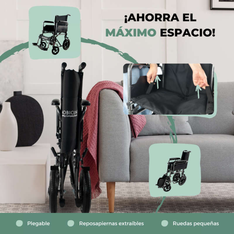 Además, es plegable para poder transportarla y guardarla fácilmente, lo que la convierte en una silla de ruedas ligera y liviana. Por si fuera poco, sus ruedas son pequeñas y macizas, sinónimo de durabilidad y seguridad, características que la convierten en una silla de ruedas manual de fácil uso. Además, una total seguridad a la hora de prevenir caídas y crear un mayor grado de autonomía e independencia al usuario.