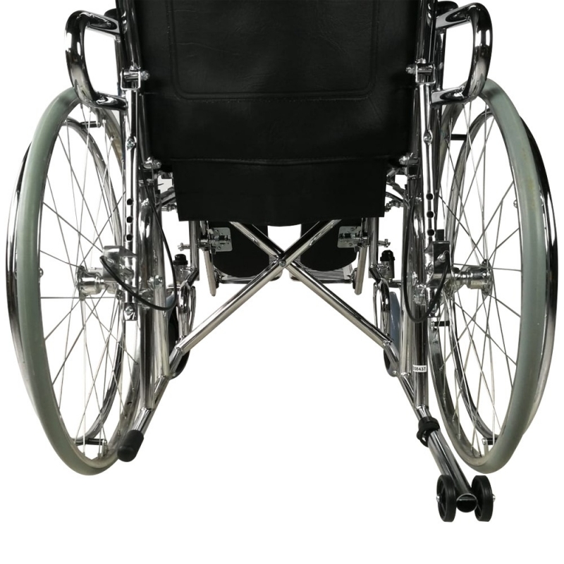 Por otro lado, esta silla ruedas para ancianos presenta un sistema de plegado, gracias al cual podrás pasar por lugares ajustados y volver a abrirla posteriormente. También ahorrarás espacio en casa a la hora de almacenarla. Además, su respaldo reclinable permite colocarlo en 5 posiciones diferentes entre los 90 y 180 grados, pudiendo colocarse incluso en una posición completamente horizontal junto con los reposapiés. Esta modalidad favorece que el usuario pueda mantener su pierna en una posición elevada, ya sea por recomendaciones médicas o problemas de movilidad, como por ejemplo, una escayola.