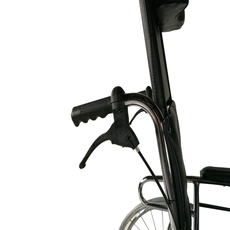 Esta silla de ruedas para personas con movilidad reducida cuenta con una palanca de pie, la cual es de gran ayuda para el acompañante a la hora de subir y bajar pequeños escalones.