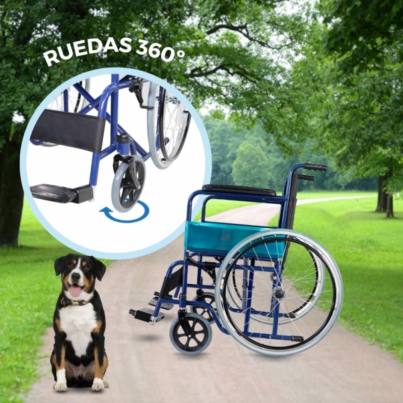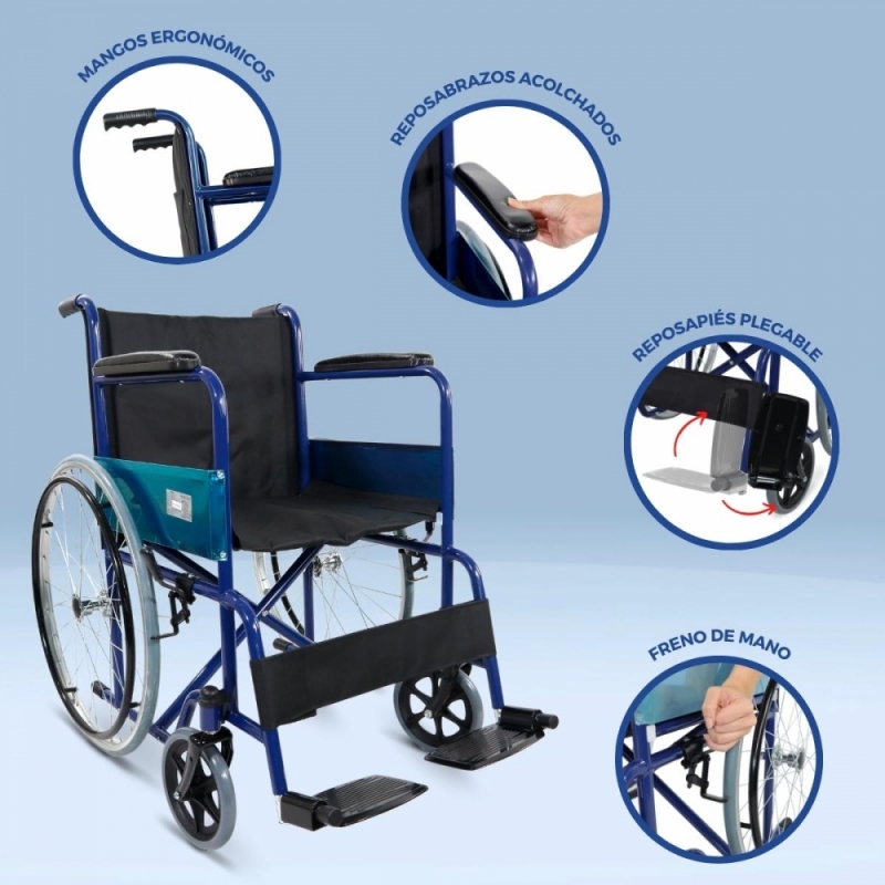 Es una silla de traslado que cuenta con una gran autonomía con ruedas que reducen el esfuerzo y frenos manuales que impiden posibles vuelcos.