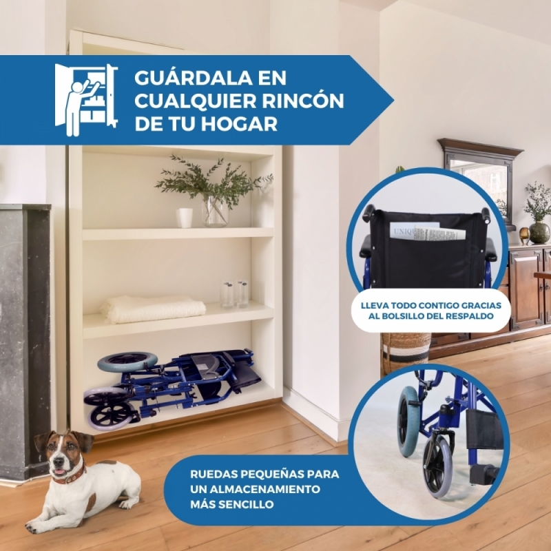 Por otro lado, presenta un sistema de plegado, gracias al cual podrás pasar por lugares ajustados y volver a abrirla después. También te permite ahorrar espacio en casa a la hora de guardarla.