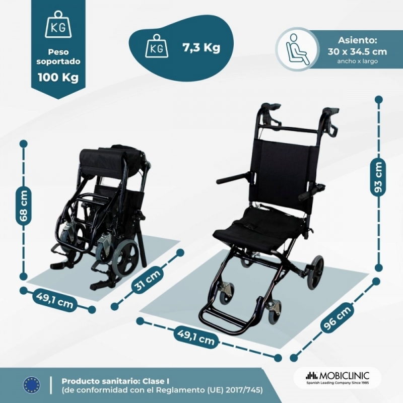 Gracias al fácil plegado y ligereza de esta silla de ruedas de aluminio es posible transportarla a cualquier lado con el mínimo esfuerzo (además incluye bolsa para transporte). Esto permite poder guardarla de forma cómoda en casa o incluso plegarla si la necesitas meter en lugares estrechos.