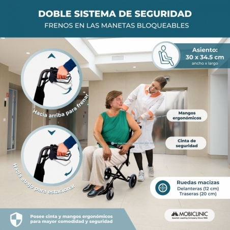La doble barra inferior de la que dispone aporta mayor sensación de seguridad, estando además fabricada con material ignífugo. El respaldo y asiento ergonómicos de la silla ortopédica permiten la máxima comodidad de los pacientes, así como la de sus acompañantes, ya que permite la subida tanto de los reposabrazos como de los reposapiés. En resumen, esta es la silla de ruedas plegable ideal si lo que buscas es seguridad, comodidad y facilidad de uso.