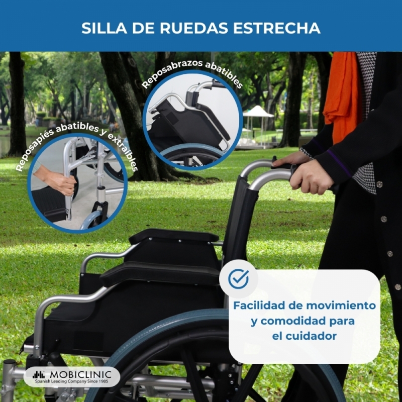 Por otro lado, al ser una silla de ruedas plegable, podrás pasar por lugares ajustados y volver a abrirla después. Además, no te ocupará apenas espacio en casa.