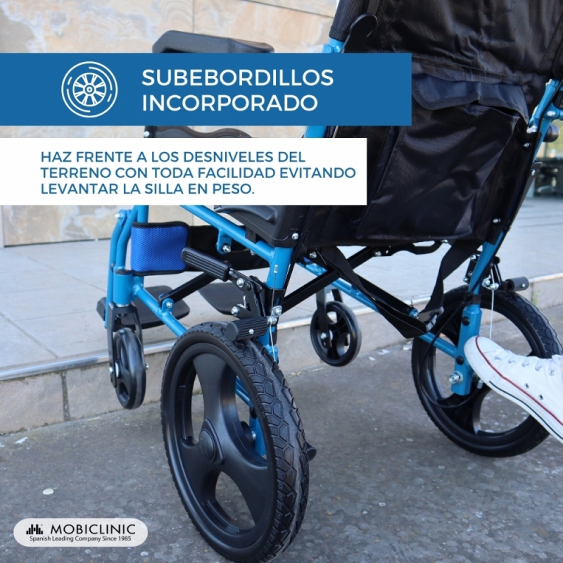 Por otro lado, sus ruedas de 15 y 30 cm de diámetro facilitan el trabajo del acompañante ya que le permite realizar largos recorridos sin ninguna complicación.