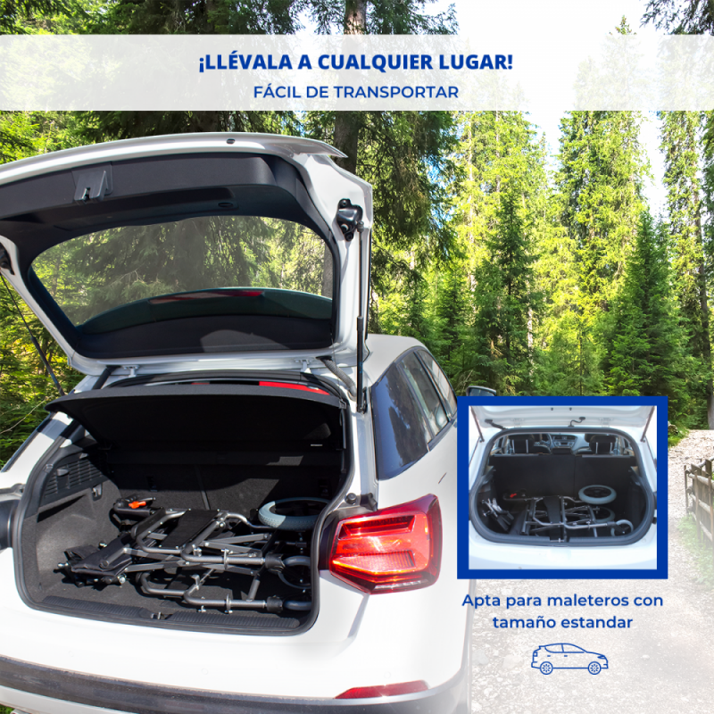 RUEDAS DESMONTABLES: Las ruedas traseras se pueden desmontar a través de un pasador y una tuerca, lo que facilita su almacenaje o transporte.