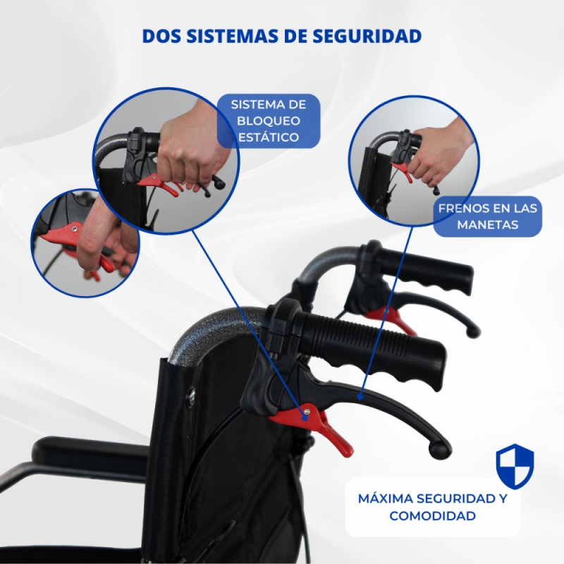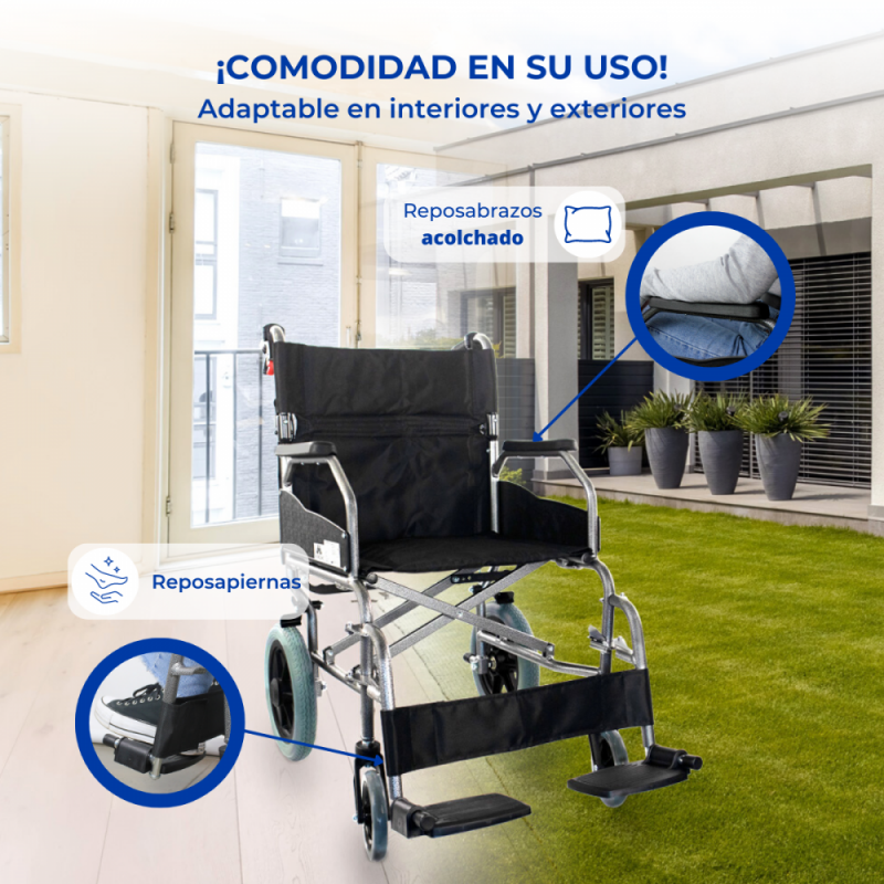 - Su ligereza: es una silla ligera y muy manejable tanto para el usuario que la utilice como para el acompañante, gracias a su material de fabricación