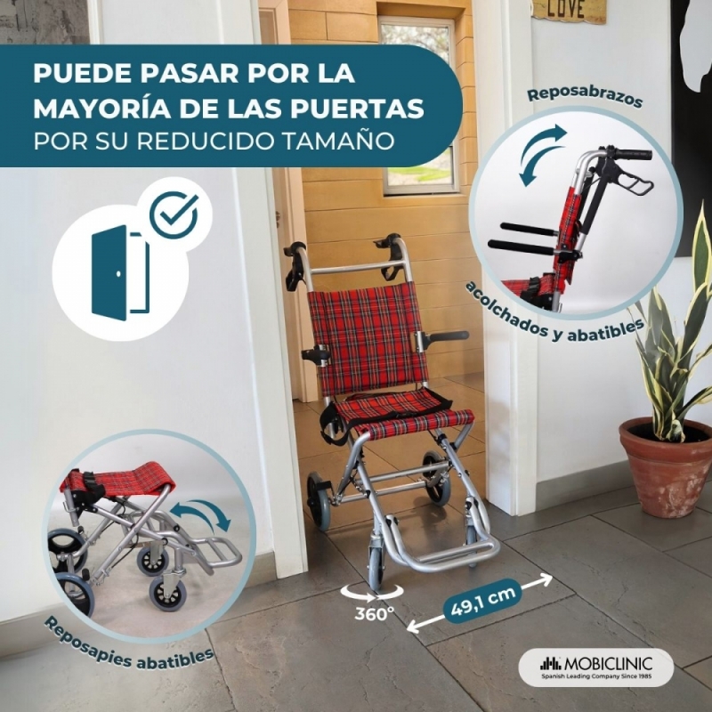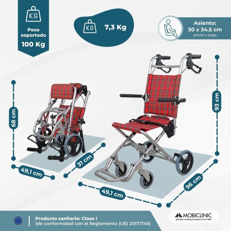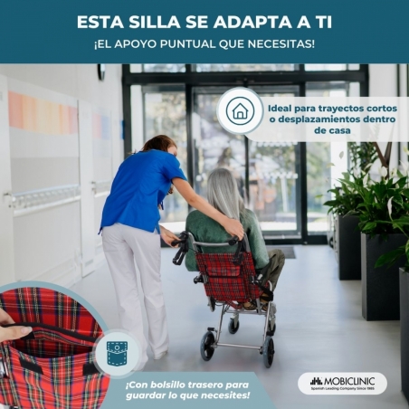 Silla de ruedas para tránsito | Asiento 30 cm | Aluminio | Frenos en manetas | Cuadros escoceses | Neptuno | Mobiclinic