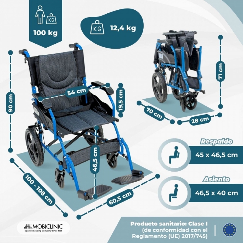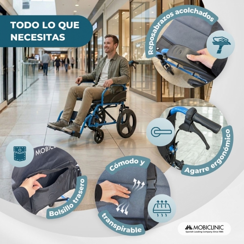 PLEGABLE Y FÁCIL DE TRANSPORTAR: gracias a su diseño plegable, la silla de ruedas Faraón se puede guardar cómodamente en casa o transportar fácilmente en el coche. Su estructura compacta permite ahorrar espacio cuando no está en uso, facilitando el día a día tanto del usuario como del cuidador.