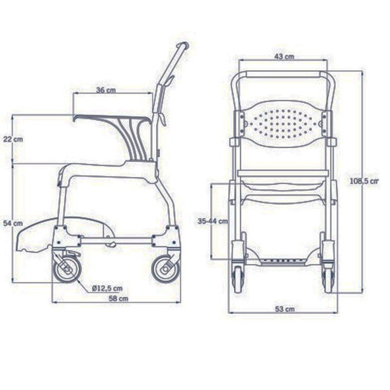 La silla de baño con inodoro está totalmente preparada para poder usarla en ducha, lavabo y sobre inodoro, así como para transportar a pacientes. Su gran capacidad de peso permite transportar a pacientes con un peso máximo de 150kg.