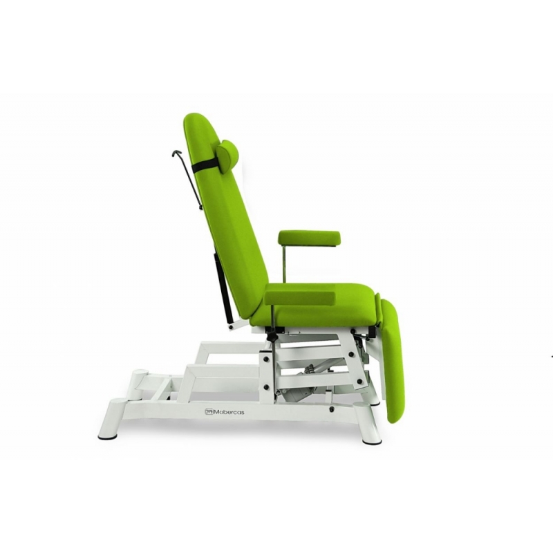 Sillón de extracción eléctrico con regulación de altura mediante mando de mano. Incluye brazos para extracción regulables en altura, giratorios a 360º y extraíbles y cojín cervical ergonómico. Posición de Trendelenburg compensado.