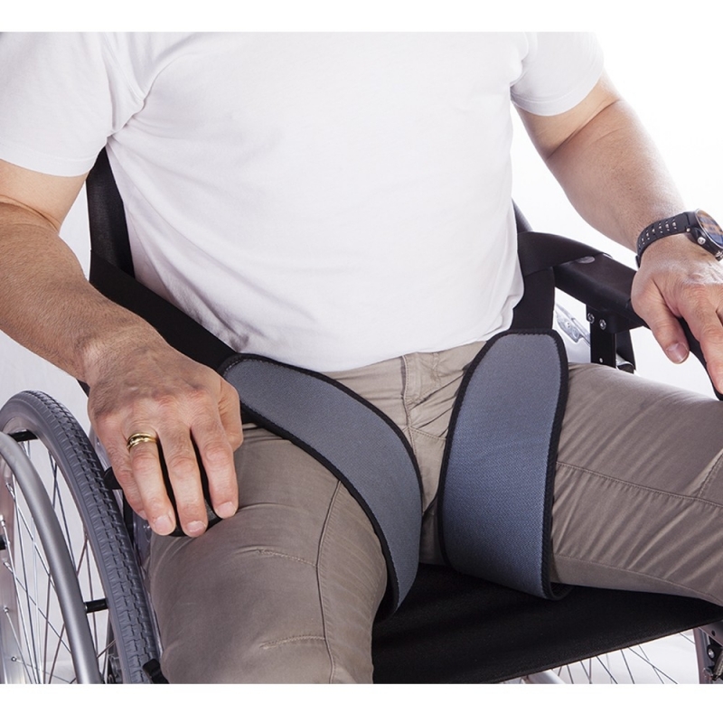 SEGURIDAD: gracias a este arnés de piernas, la persona que vaya en silla de ruedas o haga uso de sillas y sillones de descansó, tendrá ambas piernas sujetas a la silla por la zona inguinal