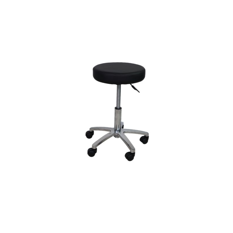 Ofrecemos a los profesionales el taburete sin respaldo con altura regulable a gas, con asiento tapizado y disponibilidad de varios colores.