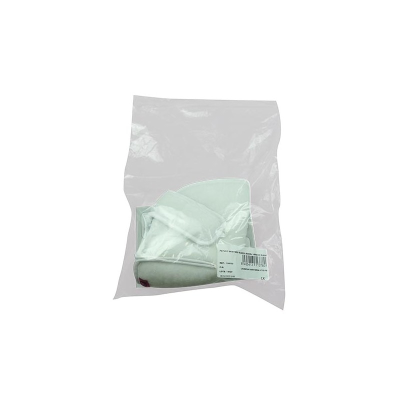 El patuco antiescaras Sanitized es ideal para mantener los pies, tobillos y empeines protegidos y evitar que entren en contacto directo con la cama, por lo que son muy recomendables para aquellas personas que deben permanecer largos periodos de tiempo en una misma posición (ya sea en la cama, en un sillón, etc.). Gracias a su diseño anatómico con cierre de velcro y su suave textura interna de algodón blanco, el pie mantiene el calor corporal. Además, es muy higiénico y previene de posibles bacterias (es hidrófugo e ignífugo).