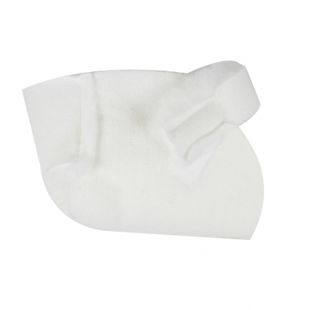 Prenda fabricada en material muy suave que disminuye la presión, evitando las escaras sobre el talón.