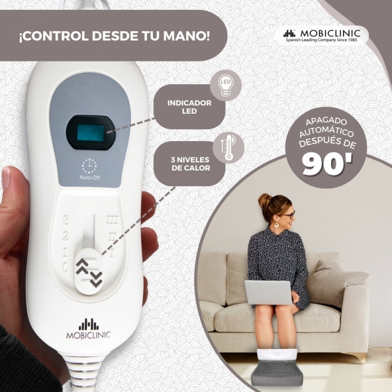 SEGURO Y FIABLE: Para tu seguridad, el calentador de pies tiene un apagado automático después de 90 minutos. Además, la protección contra sobrecalentamiento integrada te protege contra un peligro de incendio.