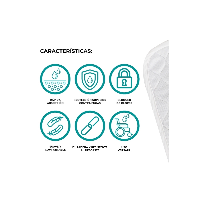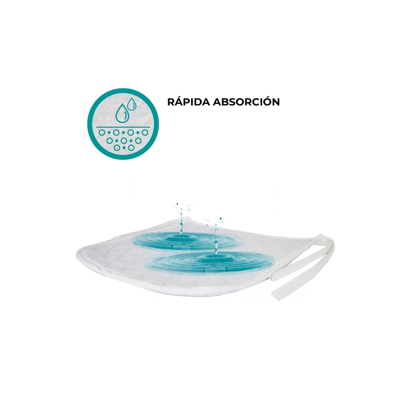 PROTECCIÓN GARANTIZADA: Protector empapador transpirable, lavable, impermeable y ajustable sobre cualquier silla o asiento mediante unas cintas en dos extremos. Compuesto por 4 capas que consiguen absorber líquidos y fluidos manteniendo la piel limpia y seca.
